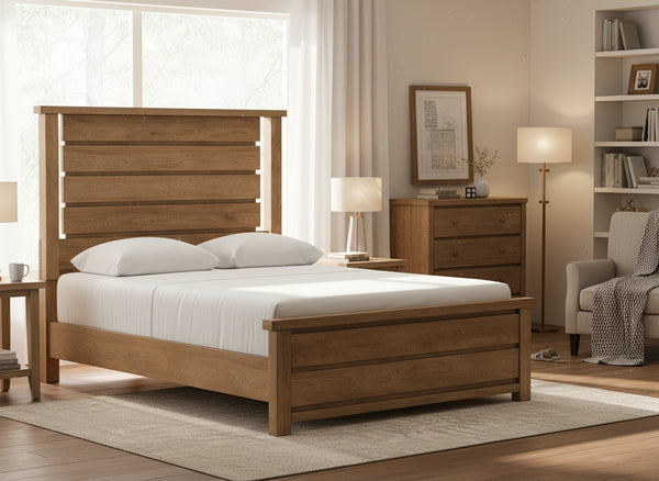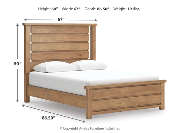 Add exceptional modern farmhouse appeal to your inner sanctum with this queen panel bed. A light wood tone enhances its rich natural beauty. Charmingly simple with thick posts, plank-style details and a sturdy silhouette, the bed offers a casually comfortable look that’s right at home.