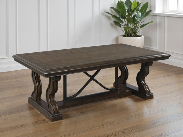 Lavish, luxurious living is within reach when you add this coffee table to your living room. Recalling a classic sense of refinement, its elegant scrolled legs make a beautifully bold statement. Ornate details on the apron add an air of opulence to the regal dark brown finish. The look is timeless. The feel? Right at home.