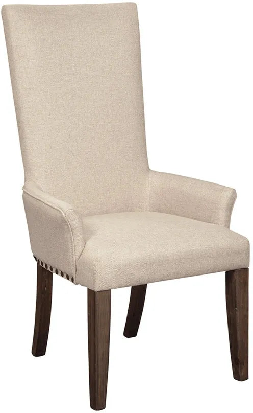 Have your fill of comfort, quality and sophistication with the sumptuously upholstered Wendota dining room arm chair. Its highly distinctive high-back styling ushers in a touch of drama that feels right at home at the head of the table. String of nailhead trim punctuates the look perfectly