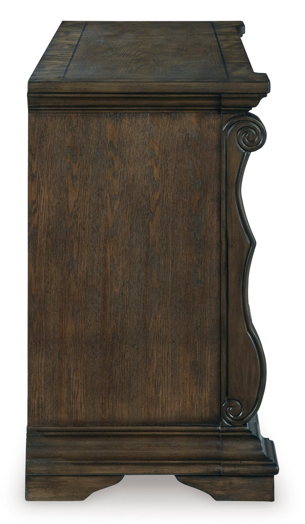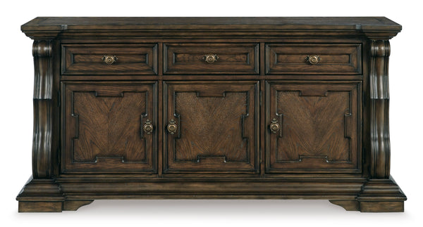 From its ornamental appliques to its large scale, this dining buffet makes a bold statement. With multiple cabinets and drawers to store necessities, the opulent piece wows with stunning style. The look is timeless. The feel? Right at home.