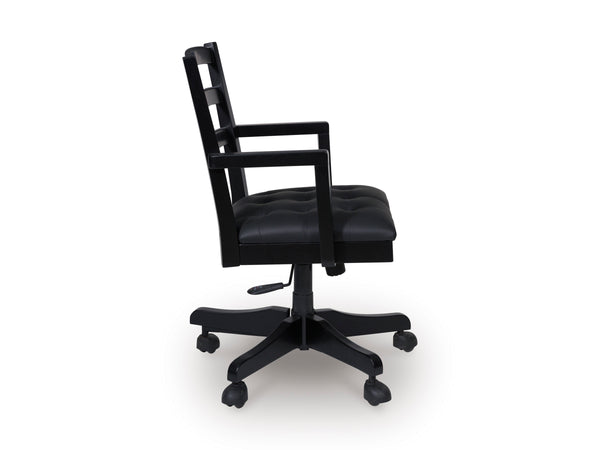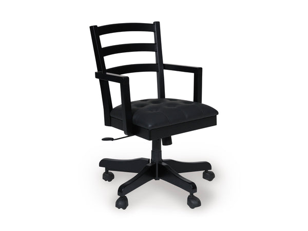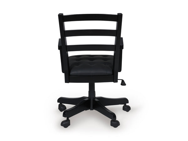 Raise the bar on modern farmhouse style with this home office chair. Its casual good looks are accentuated with a comfortably cushioned seat and warm satin black finish. And it swivels, rolls and adjusts so you can remain a mobile multitasker. Whether your style is vintage, country or eclectic, this richly crafted chair adds a hearty element.
