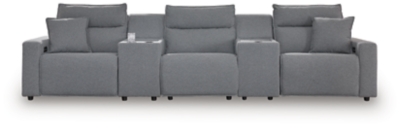 Includes 5 modular pieces: left-arm facing power recliner, armless chair, 2 consoles, and right-arm facing power recliner