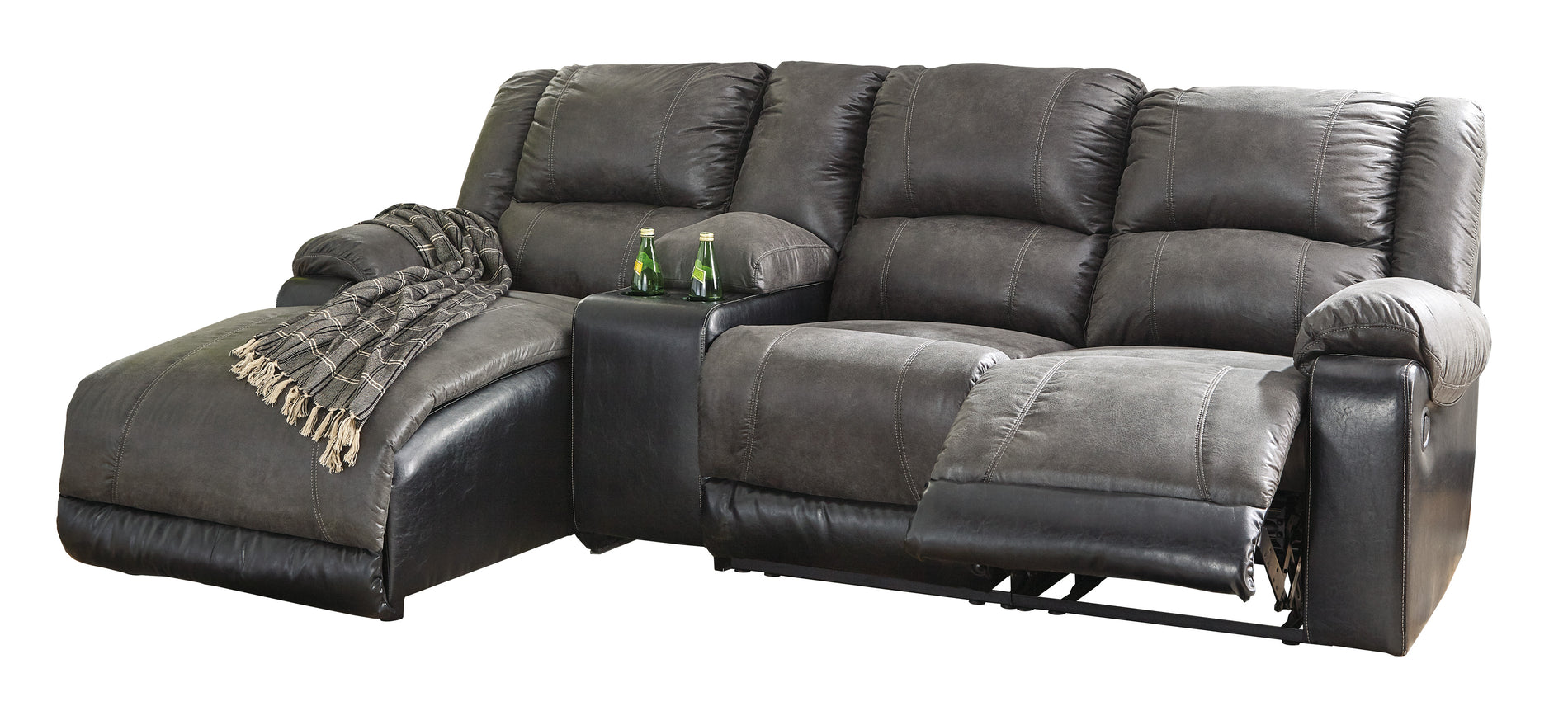 Weight : 100.09 lbs. | Cube : 19.46 ft This left-arm facing corner chaise is made with polyester/polyurethane interior and vinyl exterior upholstery. Pairs with other items in the series to make a sectional. Compatible with other 50301 items, sold separately This console with storage is made with polyester/polyurethane interior and vinyl exterior upholstery. Pairs with other items in the series to make a sectional. Compatible with other 50301 items, sold separately This right-arm facing recliner is made with polyester/polyurethane interior and vinyl exterior upholstery. Pairs with other items in the series to make a sectional. Compatible with other 50301 items, sold separately
