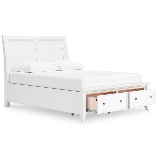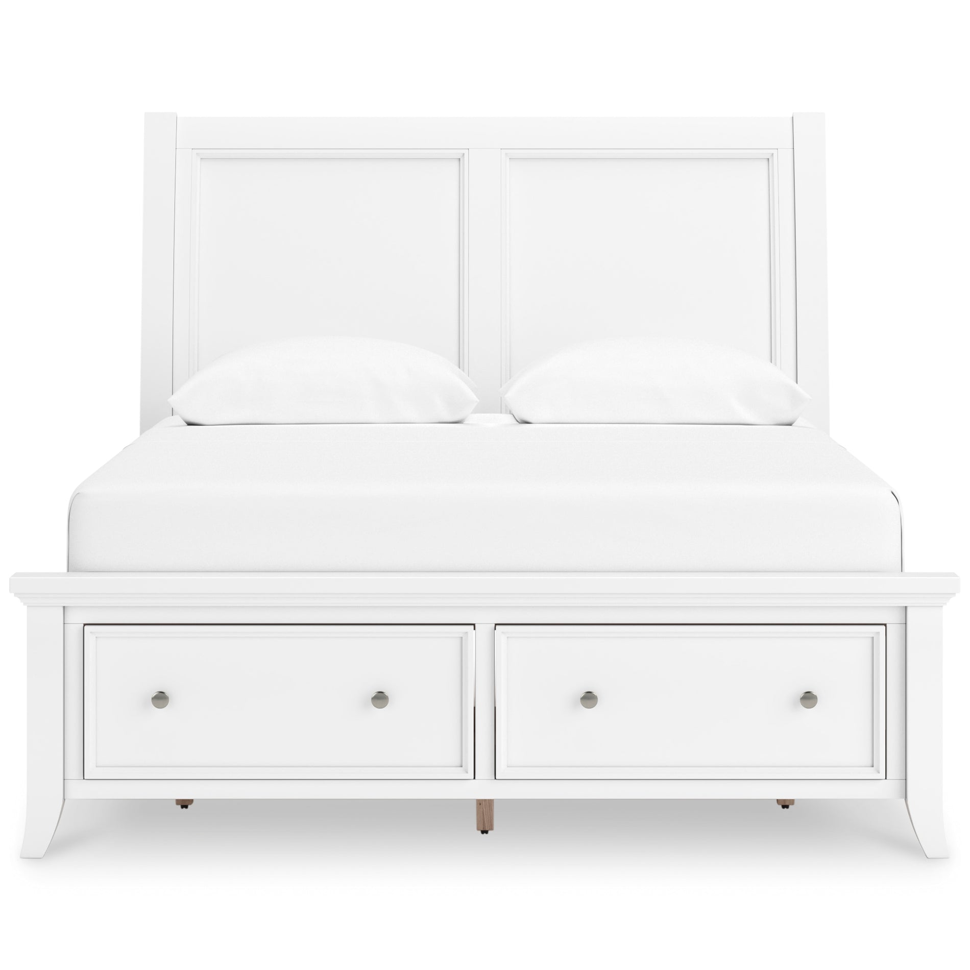 Clean, crisp and utterly contemporary. Brighten up your bedroom with this queen sleigh bed with storage. From linens to clothes to everyday clutter, the storage drawers keep things looking tidy. Pair it with pops of color, or let the fresh-feeling white finish speak for itself—its versatile hue effortlessly adapts to your changing tastes. Stylized flare legs further elevate the look.
